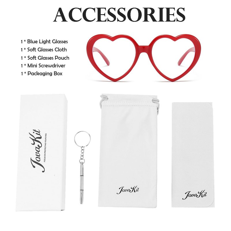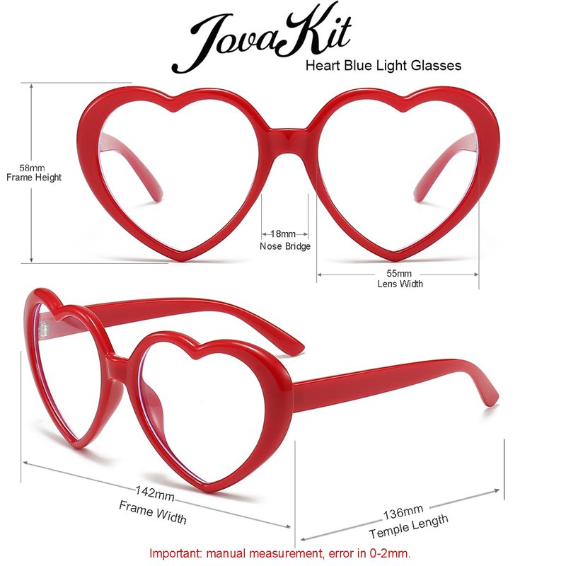 - ★ PROTECTION FOR YOUR EYES - JOVAKIT's heart blue light glasses can protection your eyes, alleviates visual fatigue and discomfort from long periods of web surfing, gaming and working under fluorescent lights. Antiblue ray lenses can filter 100% harmful blue light, help stably generating of melatonin guarantees sleep quality.