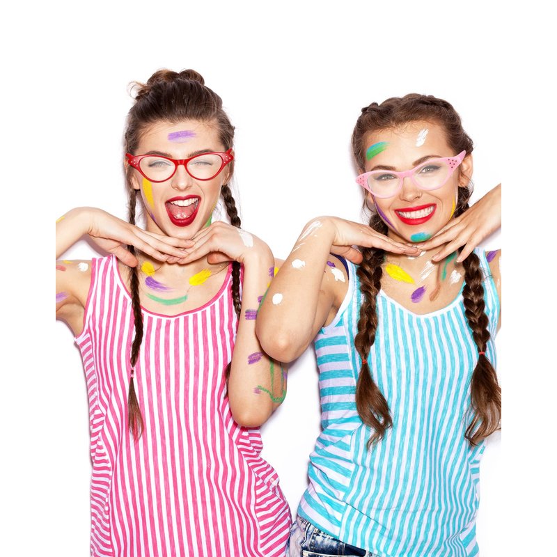 These colorful eyeglasses are made of plastic material, beautiful and funny, to create a retro inspired feel atmosphere.