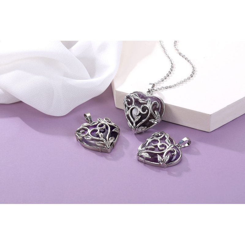 Jovivi Real Amethyst Healing Crystals Necklace for Women Flower Leaf Wire Wrapped Crystal Heart Gemstone Pendant Necklace Natural Stone Reiki Quartz Jewelry Mothers Day Gifts