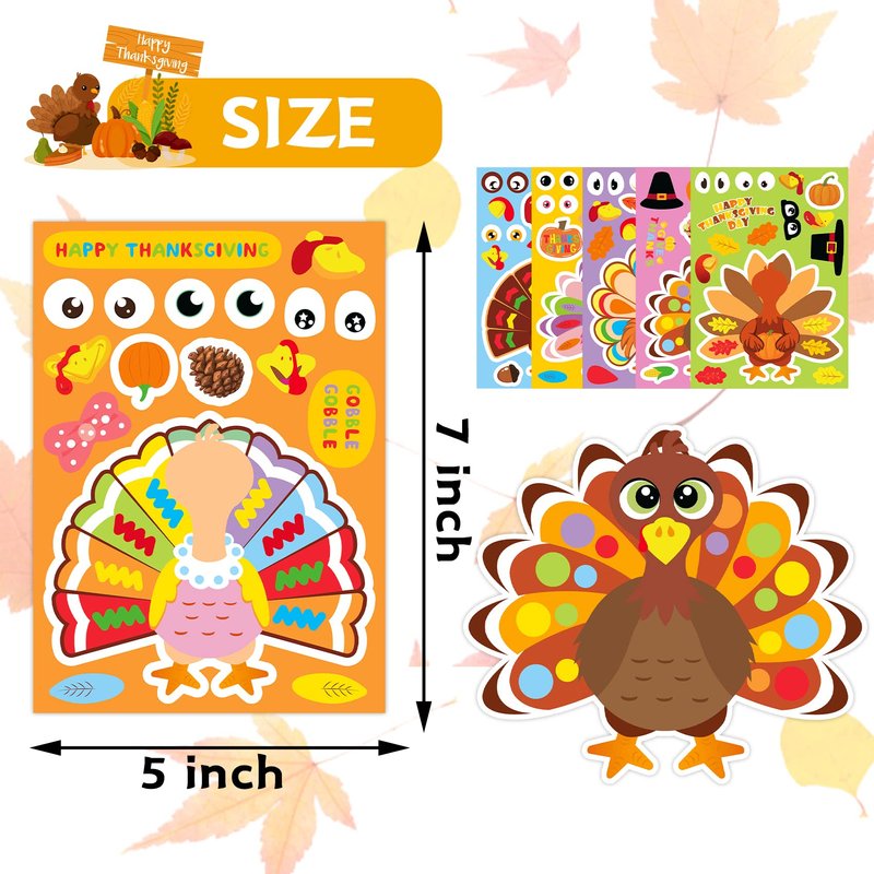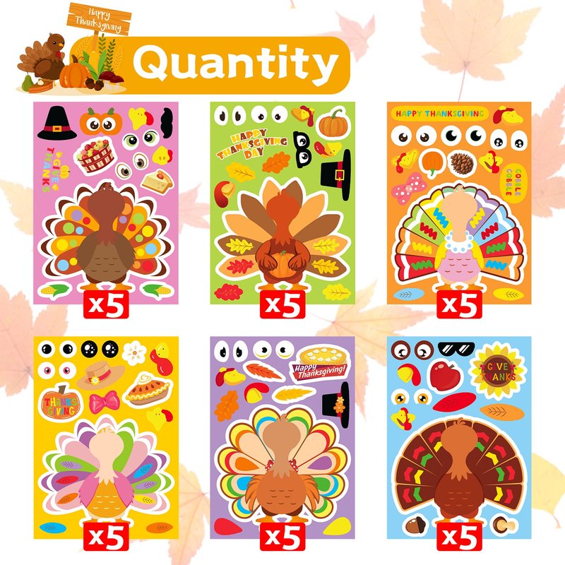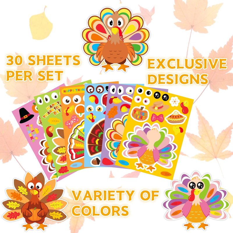 - SUPER VALUE: You will get 30 sheets of turkey stickers, 5 sheets of each style. Each sheet of make your own turkey sticker has several face expressions. Kids can choose their favorite to create a unique turkey. Super value of assorted Thanksgiving crafts for kids.