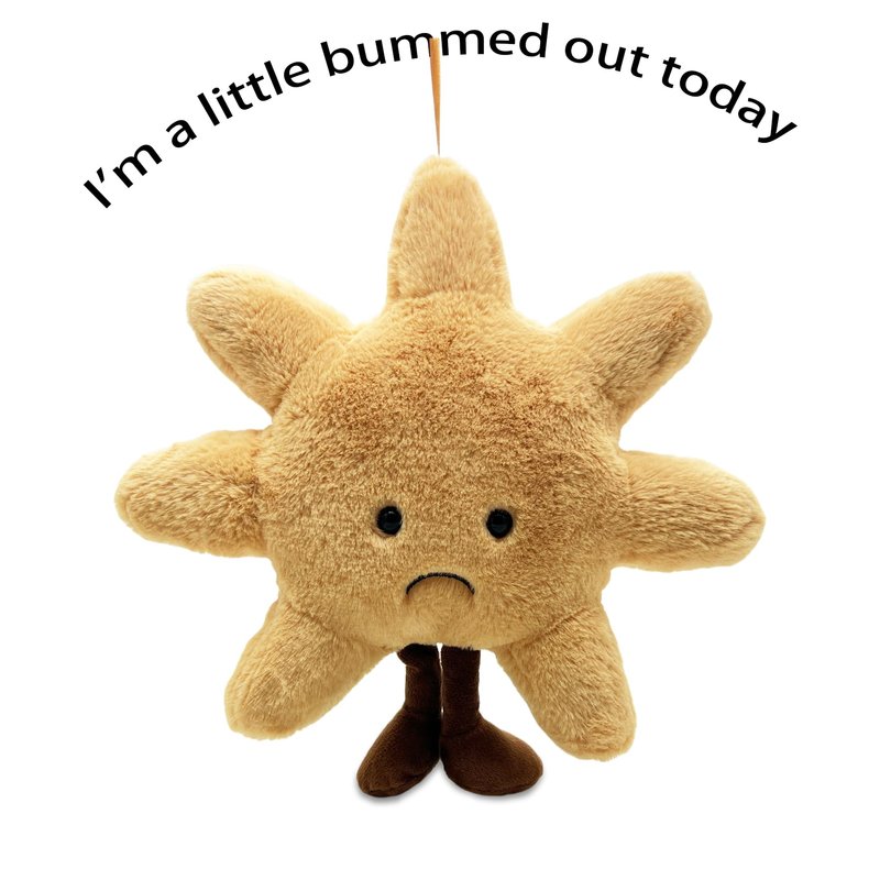 - ☀️ Cheerful Sun Design: This plush toy features a double-sided expression, with one side showing a happy face and the other a sad face. Its adorable yellow sun-shaped design adds a touch of sunshine and charm to bedrooms, nurseries, or play areas.