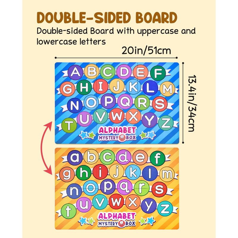 - Fun Alphabet Learning Toys: With our alphabet toys, kids are able to reach inside and discover fun miniatures of 26 letters of alphabet! Our learning toy comes with 1 play box, 26 miniatures of language objects and 1 double-sided game board printed with uppercase and lowercase. We provide a pretty box, easy for storage, so that you can take it anywhere
