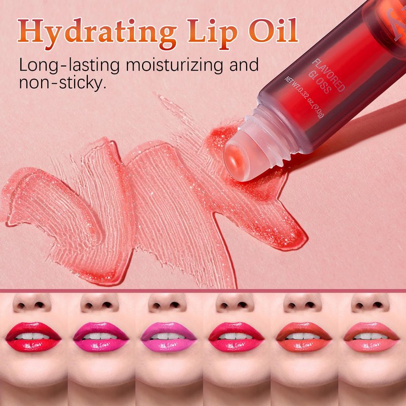 6 Colors hydrating lip oil set, lip gels are Lightweight and hydrating, provide a mirror finish that glides on effortlessly. They lip gels deliver a hint of color with a nonstick finish. Vegan and cruelty-free.