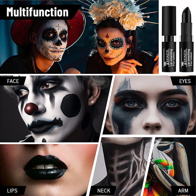 Great for Halloween FX makeup for Goths, vampires, clowns, mimes, zombies, cosplay, theatrical, stage, and act.