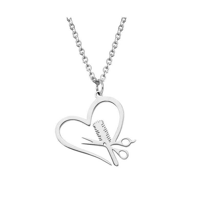 JOYID Stainless Steel Hairdresser Scissor Comb Pendant Necklace Heart Hair Stylist Jewelry for Women