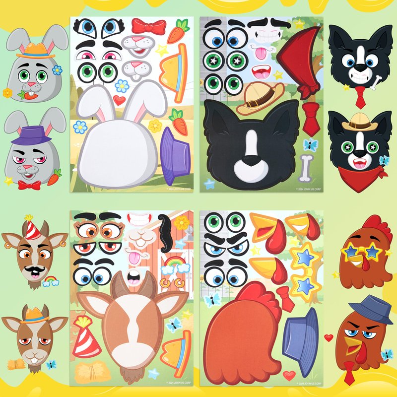 JOYIN 36 Pcs 9"x6" Farm Animals Make a face Stickers for Kids, Make Your Own Animal Sticker Sheets, Party Favors Kids Crafts, Goodie Bags Stuffers for Kids, Classroom Rewards