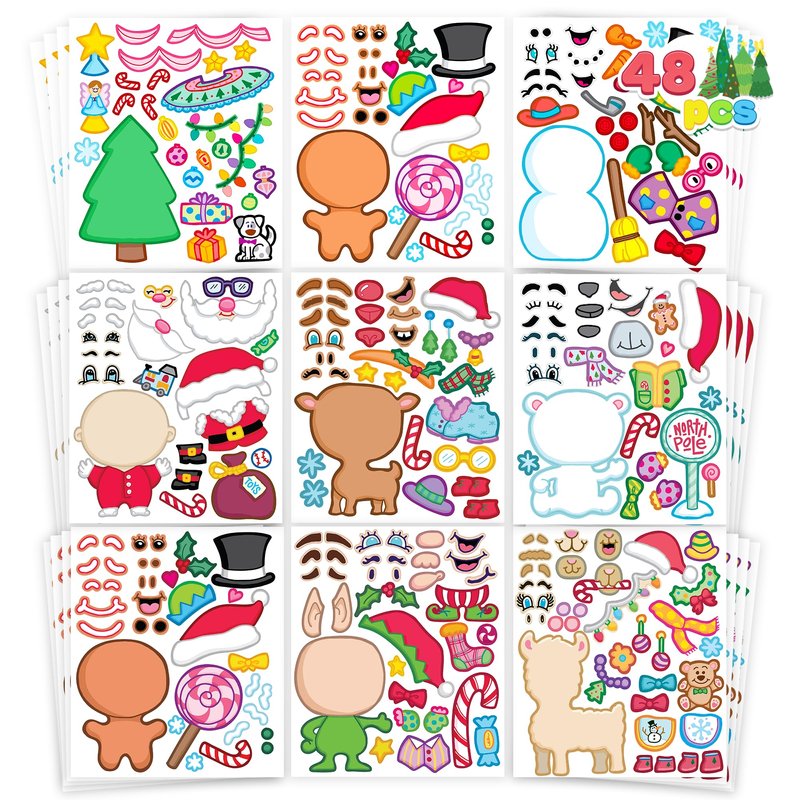 - SUPER VALUE PACK. Our Christmas stickers set includes 48 Pieces Christmas Series Party Supplies Mix and Match Decoration Stickers with 10 full body designed Christmas characters. Pack includes Santa santa, Reindeer, Gingerbread, Snowman, Elf, Penguin, Alpaca, Polar Bear and Christmas Tree etc.