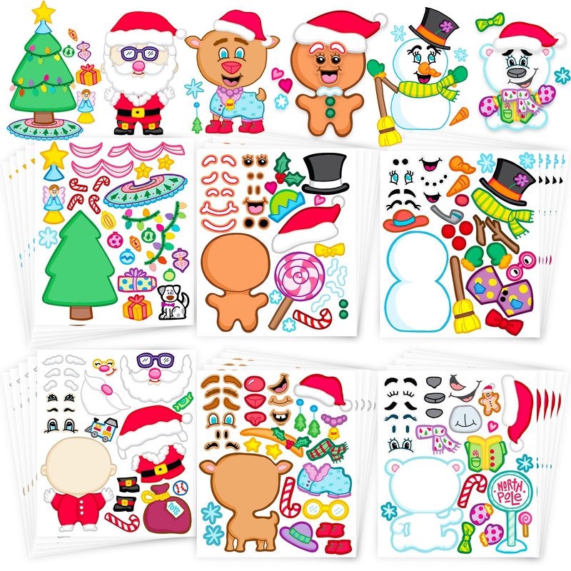 JOYIN 48 Pcs Christmas Make-a-face Sticker Sheets Make Your Own Characters Sticker with Full Body Design Santa Santa, Gingerbread, Snowman, Reindeer and Elf Kids Party Favor Supplies Xmas Craft