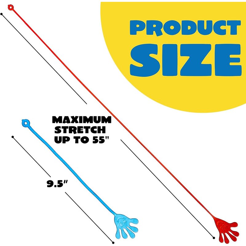 - 48-PACK STICKY HANDS PARTY FAVORS: Get 48 pieces of colorful and glittery sticky hands that stretch up to 8 feet!