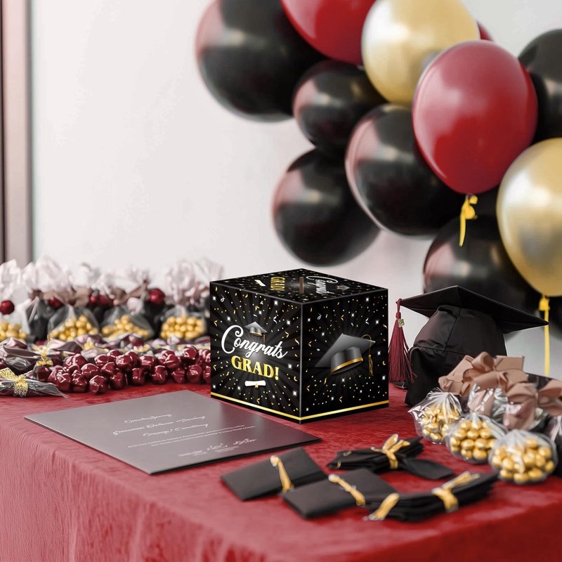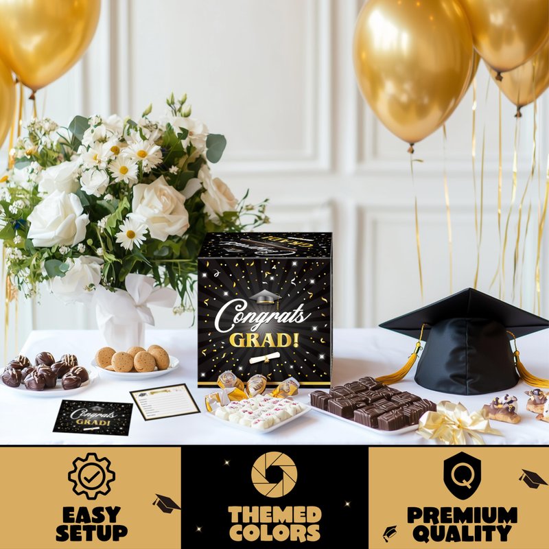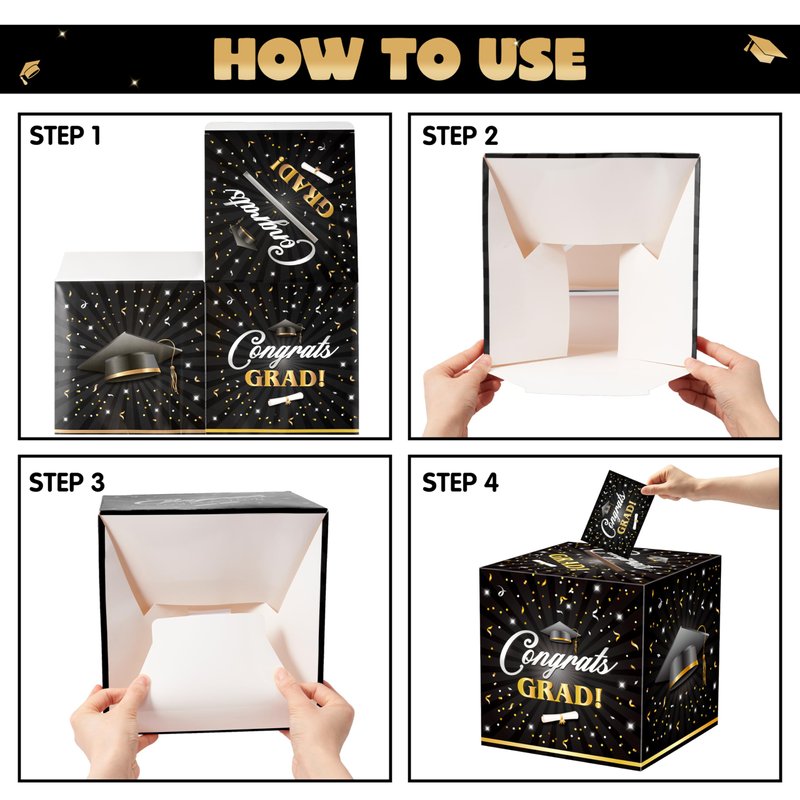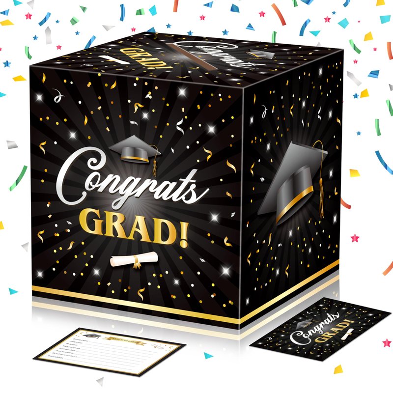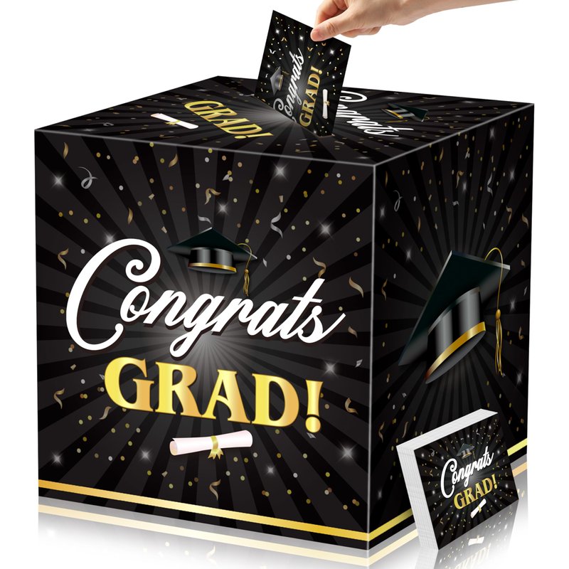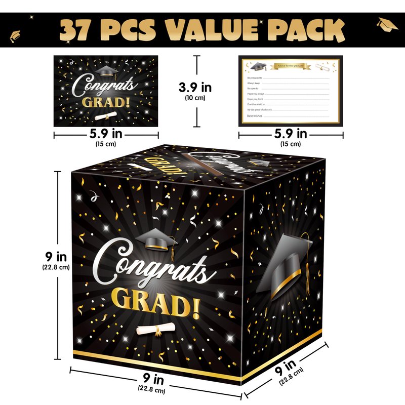 JOYIN 9" Graduation Decorations Card Box with 36 PCS Cards (Black & Gold), Congrats Grad Money Box for Class of 2025 Grad Party Decoration, Gift Holder for Graduation Party Favor Supplies