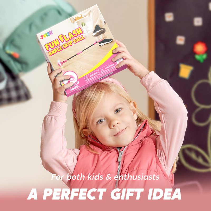 JOYIN Pink Ankle Skip Ball with Flashing Lights, Skip it Toy for Kids Indoor & Outdoor, Flashing Swing Ball Foldable Sports Toy, Birthday Gifts for Kids 3 4 5 +