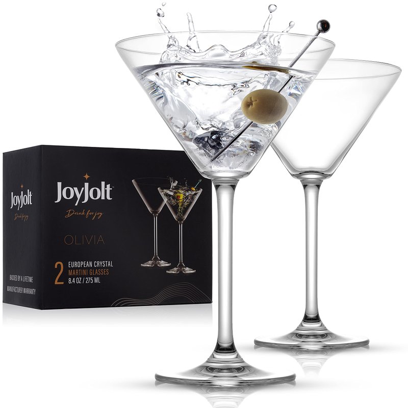 - Versatile: Just like other JoyJolt cocktail glasses set, our newest member, Olivia bar glassware, is suitable for any drink you desire. Fancy a Manhattan cocktail? Now you have a crystal Manhattan glass to please you.