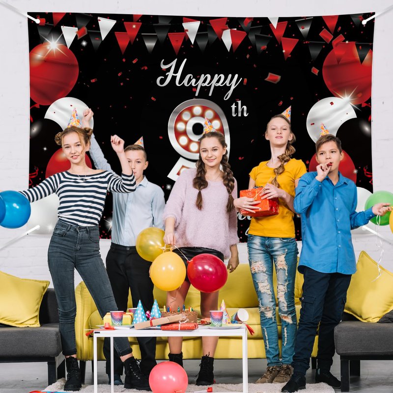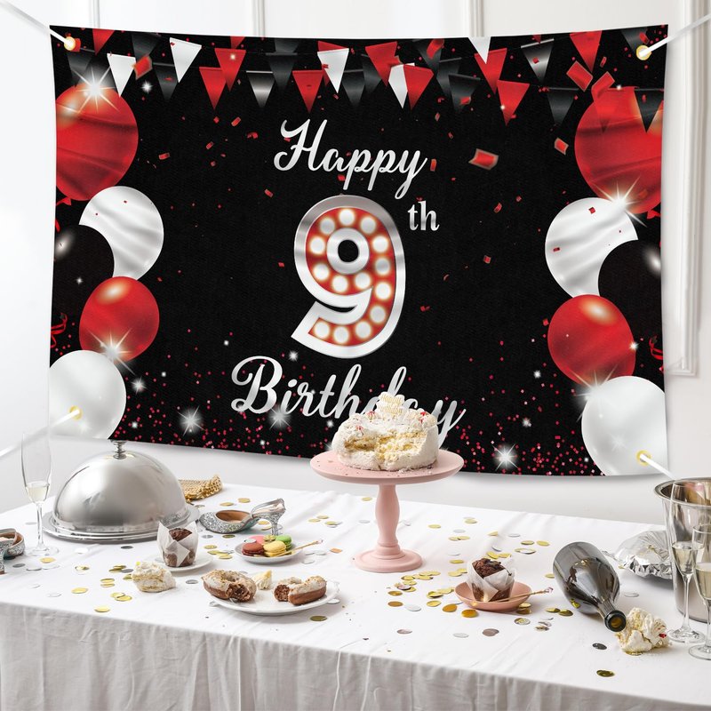 - EASY TO USE - All four corners of the banner have grommets made of solid copper. To decorate your 9th birthday party, simply use the rope that comes with and hang it as a wall background, dessert table decorations or a photo backdrop.