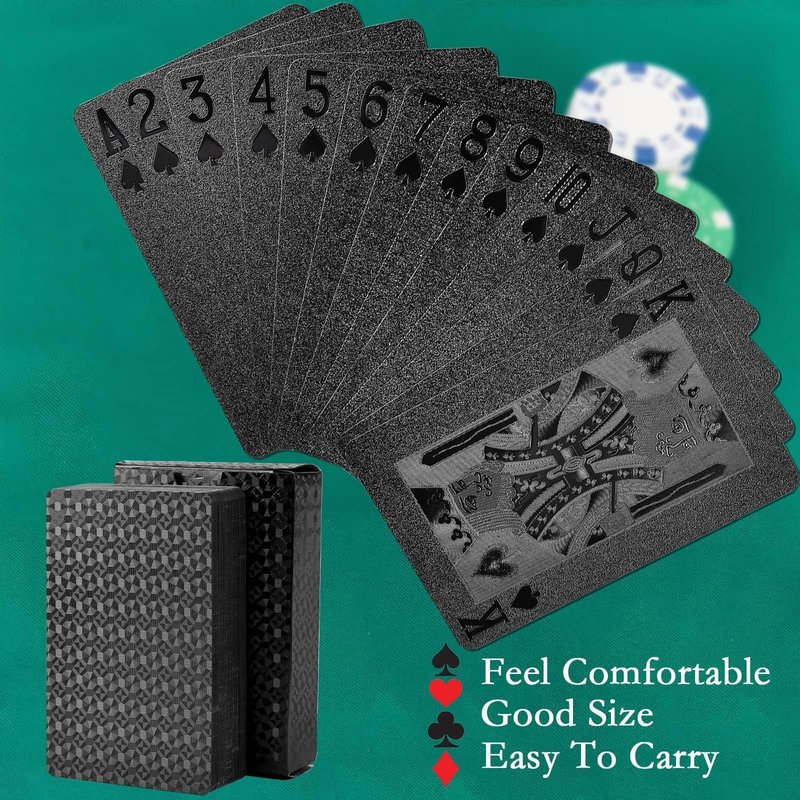 Joyoldelf Cool Black Foil Poker Playing Cards, Waterproof Deck of Cards with Gift Box, Use for Party and Game