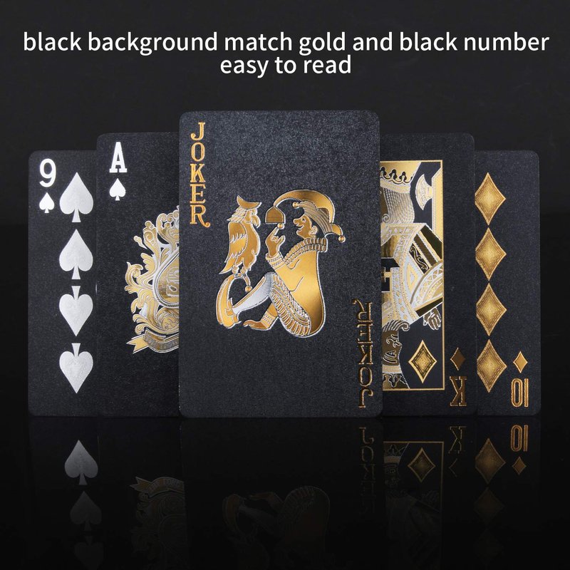 Joyoldelf Cool Black Playing Cards, Waterproof Poker with Dollar Pattern, Black-Gold Foil Cards with Box, Great for Magic & Party