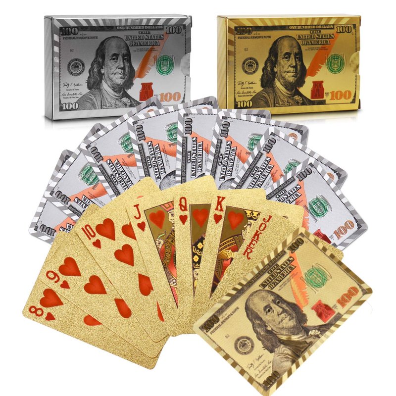 - Easy to Read - Playing cards with clear silver and gold word pattern on the front and dollar pattern on the back. Exquisite craftsmanship, you can easily read the words on the plastic playing cards.