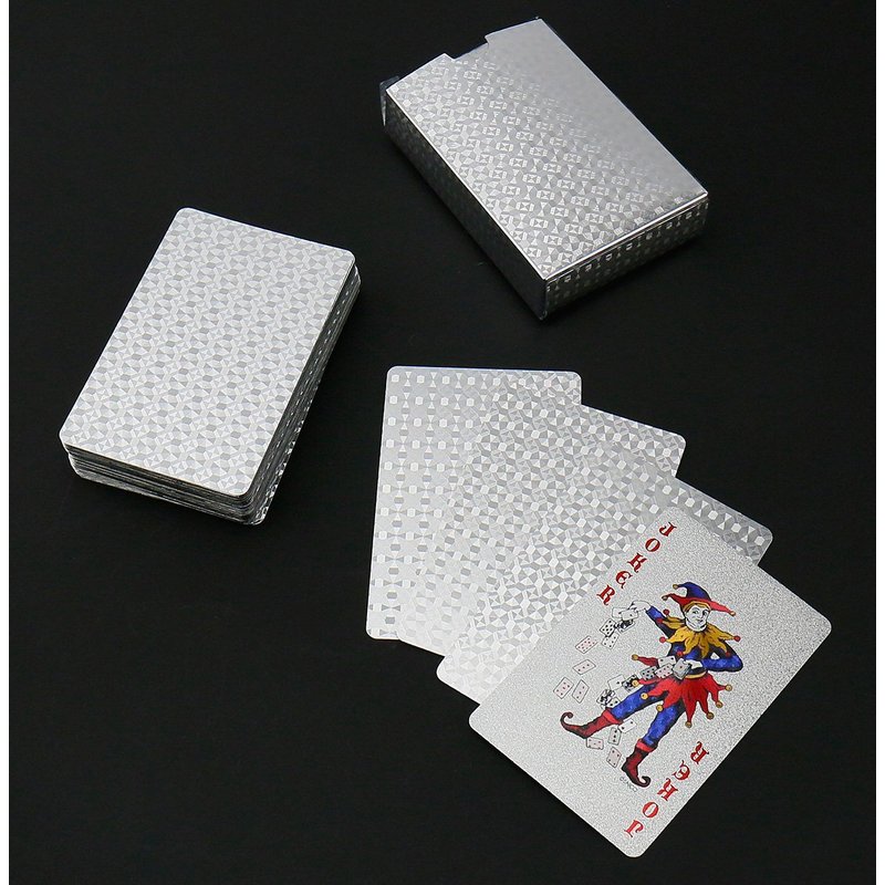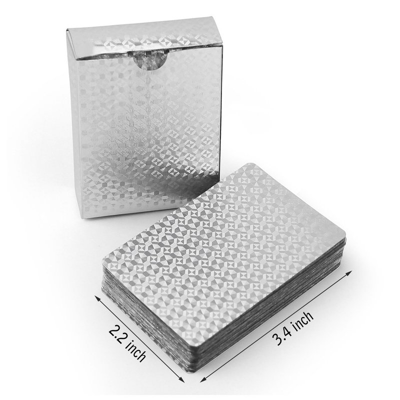Joyoldelf Waterproof silver diamond Playing Cards can make you deepen the friendship with your friends, also a good way to communicate with your family. Poker is becoming a more and more popular game for the all kinds of party, BBQ. Let Joyoldelf silver foil poker cards give you a wonderful playing experience! More Features -100% brand new and high quality. -Amazing looking. -Smooth and flexible, very easy to shuffle. -Exquisite silver foil design. -Waterproof and washable. Specifications: Color: Silver Minimum Player Number:2 Package: a deck of cards Material: paper + Silver foil Poker Size: 2.2 x 3.4 inch (5.7 x 8.7cm)