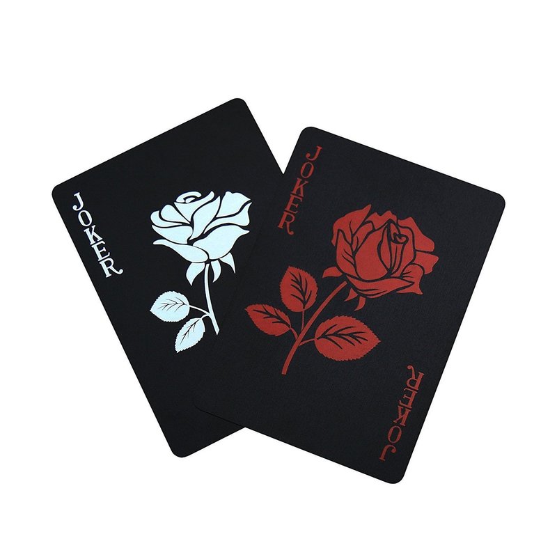Joyoldelf Waterproof Playing Cards with Unique Pattern & Flower Backing - Cool Black PVC Flexible Classic Magic Poker Tricks Tool