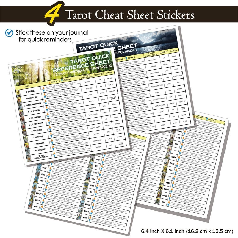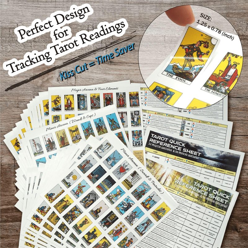 - 【Vibrant Tarot Sticker】Joyppy mini Rider Waite Smith tarot deck stickers are designed for keeping track of your daily tarot spreads. These kiss-cut tarot stickers are easy to peel and use anytime for your tarot journal. The package includes 4 tarot cheat sheets for all tarot cards, great for both beginners and advanced tarot readers.