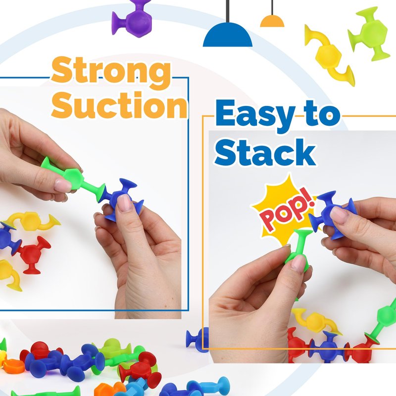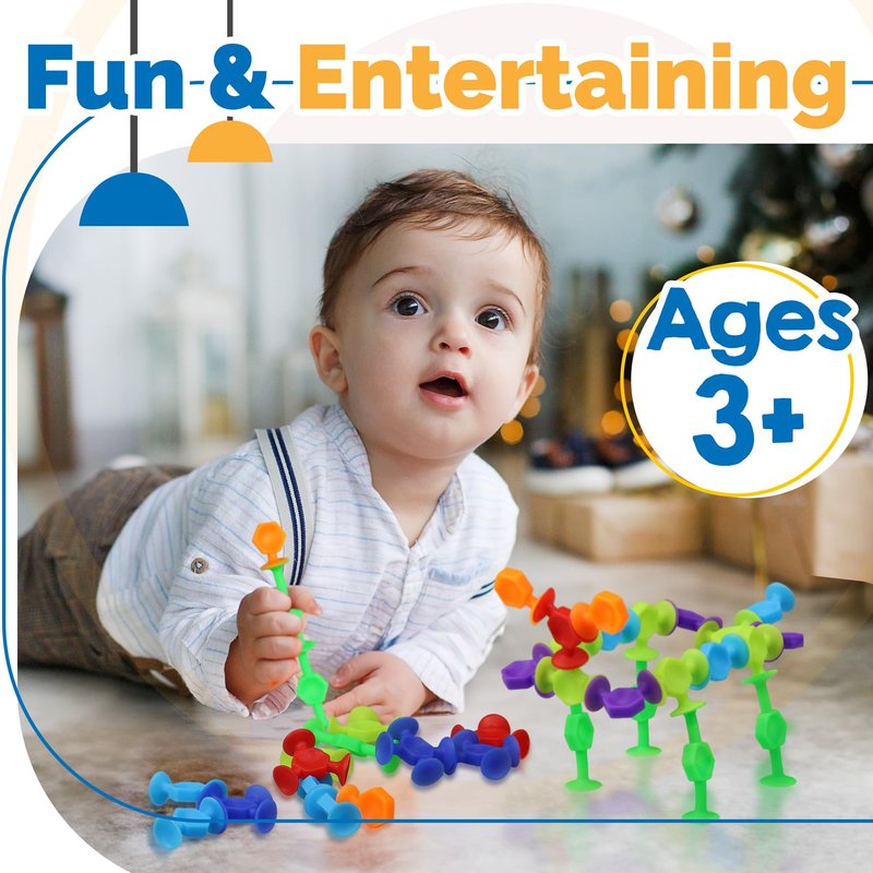 - Strong Suction Power: With strong suction technology, these montessori 3 year old suction cup toys stick firmly to smooth surfaces, allowing children to build without the no hole bath toys falling over, promoting creative thinking & problem-solving as they explore patterns and towering structures
