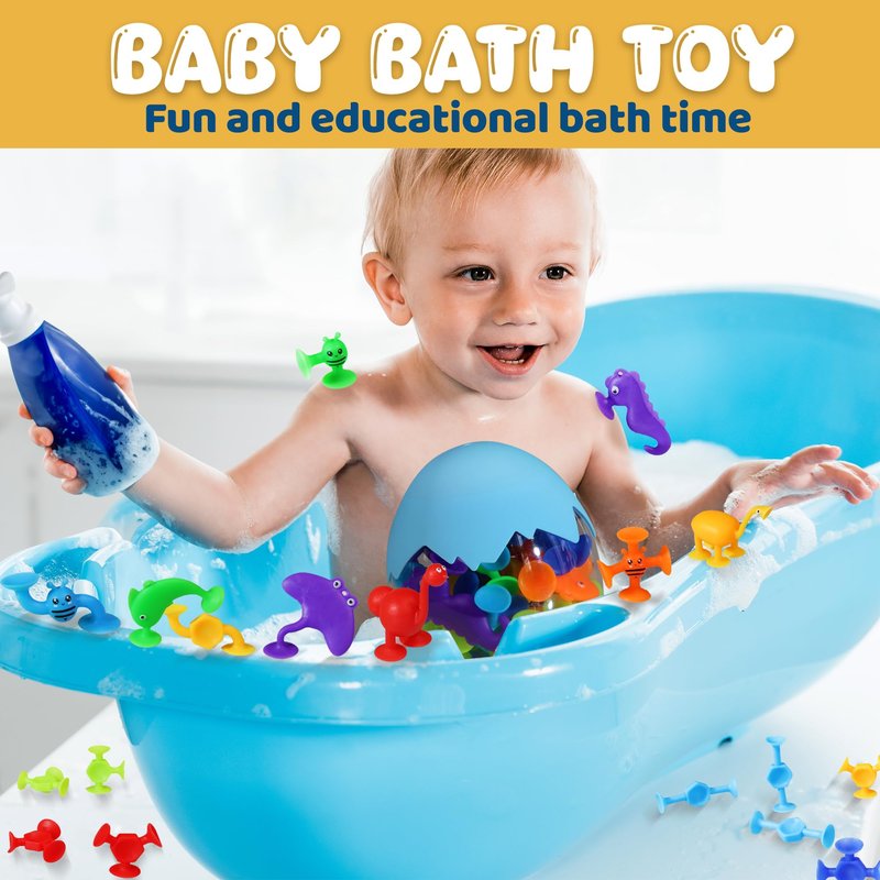 - Sensory Exploration: Our kids bath toys have a variety of textures, colors, and shapes designed to stimulate your child's senses and encourage sensory exploration. Each suction toy provides a unique tactile experience that engages young minds and enhances kids learning and discovery.