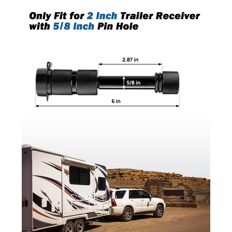 - 【PREVENT RATTLING NOISE】 When you are using a trailer hitch, you might run into some issues like rattling and noise. Our trailer hitch lock pin is equipped with 2 rubber O-rings, which can effectively prevent rattling noise caused by shaking during towing.[NOTE: 2 O-Rings can be disassembled, if you find the trailer lock is short, you can remove the rings and re-install the lock.]