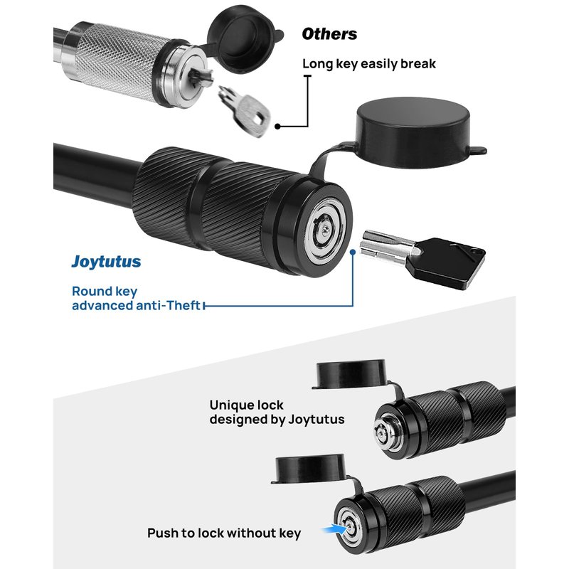 - 【ANTI-THEFT】 Unlike other hitch pin locks, each lock cylinder is unique and designed by JoyTutus. With solid and heavy-duty No.45 steel construction, adopting a safer zinc alloy lock core and plum blossom keyhole, which can prevent others from towing your trailer away.
