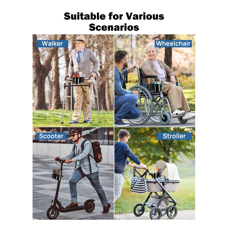 - 【Fits Any Size Your Need】The rollator cup holders have flexible flaps that can adjust to any size water cup to stay upright. On one side of the holder, there is a designed slot meant to accommodate a bottle or cup with a handle, such as a mug or a baby bottle. Tips: Please measure your device size before buying to see if it is suitable for use or contact us.