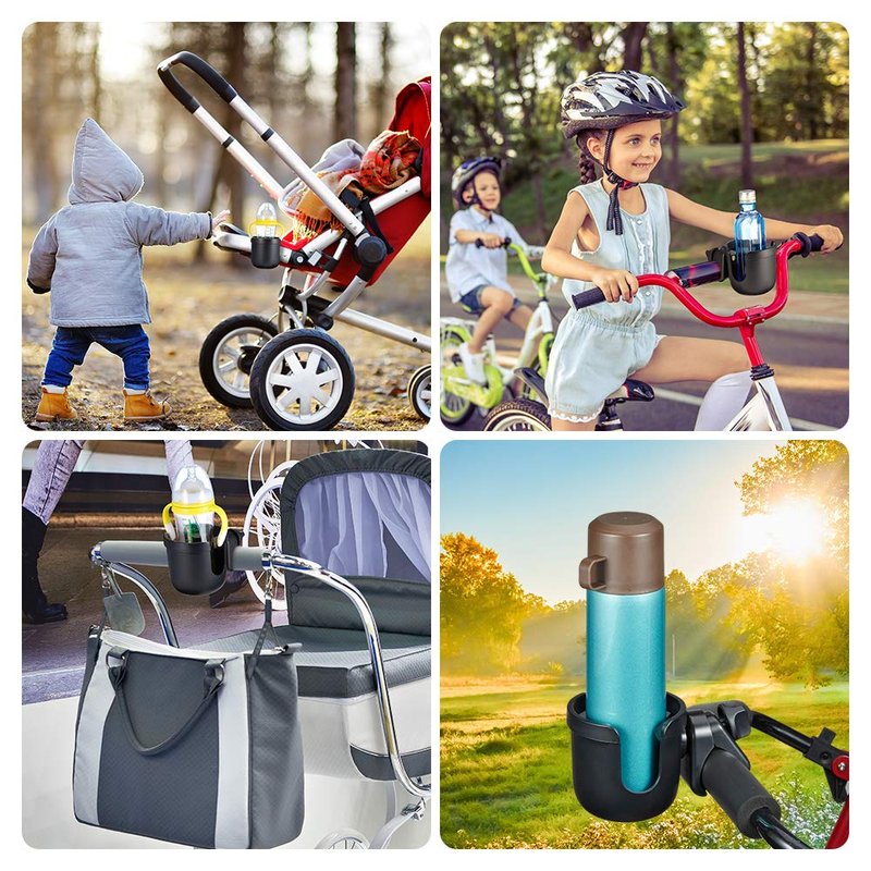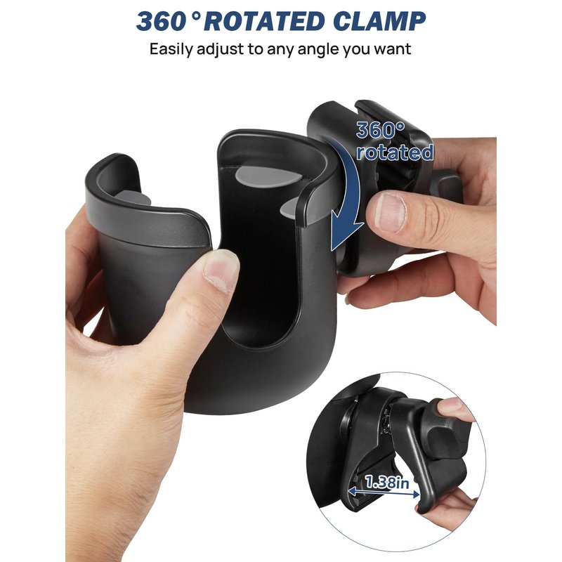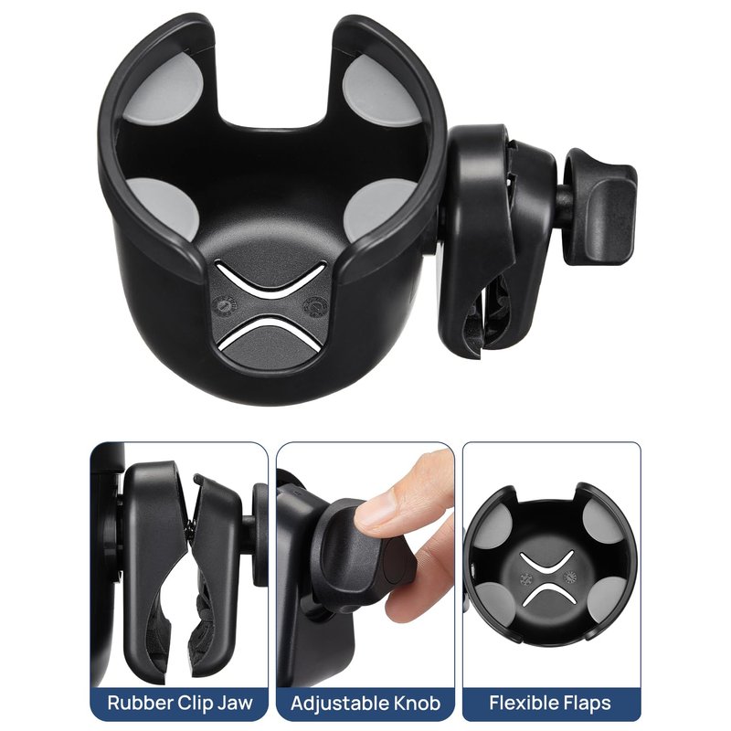 - 【Universal cup holder】Multifunctional cup holder could be used for Rollator, wheelchair, mobility scooter, armrest, kid bicycle, airport chair, office chair, lawnmower, stroller, etc. Put different sizes of bottles, like water bottles, coffee mugs, baby bottles, etc.