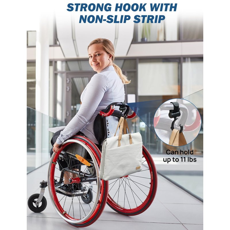 JOYTUTUS Wheelchair Cup Holder, Rollator Cup Holder, 4 Flexible Tabs with Hook Drink Holder for Walker, Scooter, Stroller, Mobility