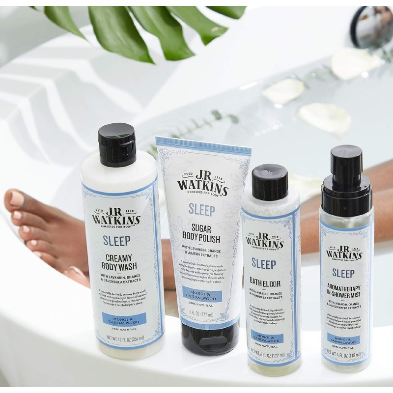 - Creamy Body Wash: J.R. Watkins SLEEP Body Wash is crafted for sensitive skin and infused with naturally derived extracts. It cleans without stripping the skin of its protective surface oils while calming the mind, relaxing the body and encouraging a restful night's sleep.