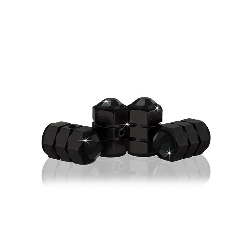 JR2 Bling Anti-Theft Locking System Black(BK-BC) Crystal Metal Black Tire Rim Valve Stem Cap