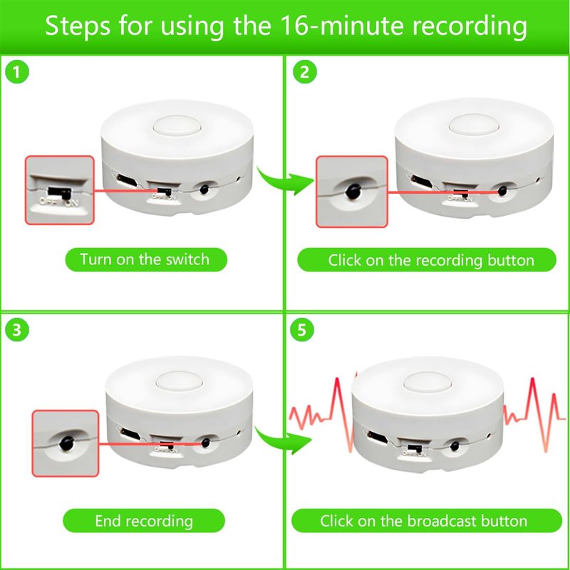 - 16 Min Clear Recording :The voice recorder easy to use, Record up to 16 Min of clear sound through the microphone, Just press and hold for 1 second, it will start recording when you hear a "beep". During recording, you can release the button. During the recording process, you press the button again,it will stop recording when you hear "two beeps". That you will hear your recording voice.