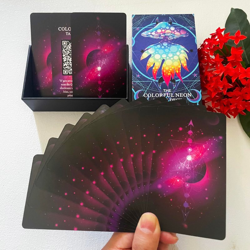 Colorful Neon Tarot Deck revives the colors to be more eye-catching while preserving the authentic identity of timeless tarot art. Strong and durable, easy to use - whether your tarot reading interest is just blossoming or you are ready to launch your tarot reading business. Follow from the heart to foresee the future, you will get stronger will and firmer goals in the world of tarot