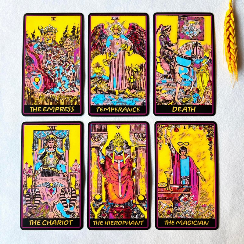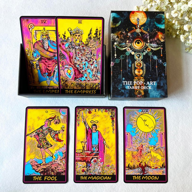 - 【Tarot Cards Set】This unique Tarot deck inspired by Pop Art is a modern re-coloring of the traditional Rider Waite Smith deck. This new reimagining combines the traditional symbols of Pamela Coleman Smith's famous and beloved cards with a more contemporary and vibrant feel