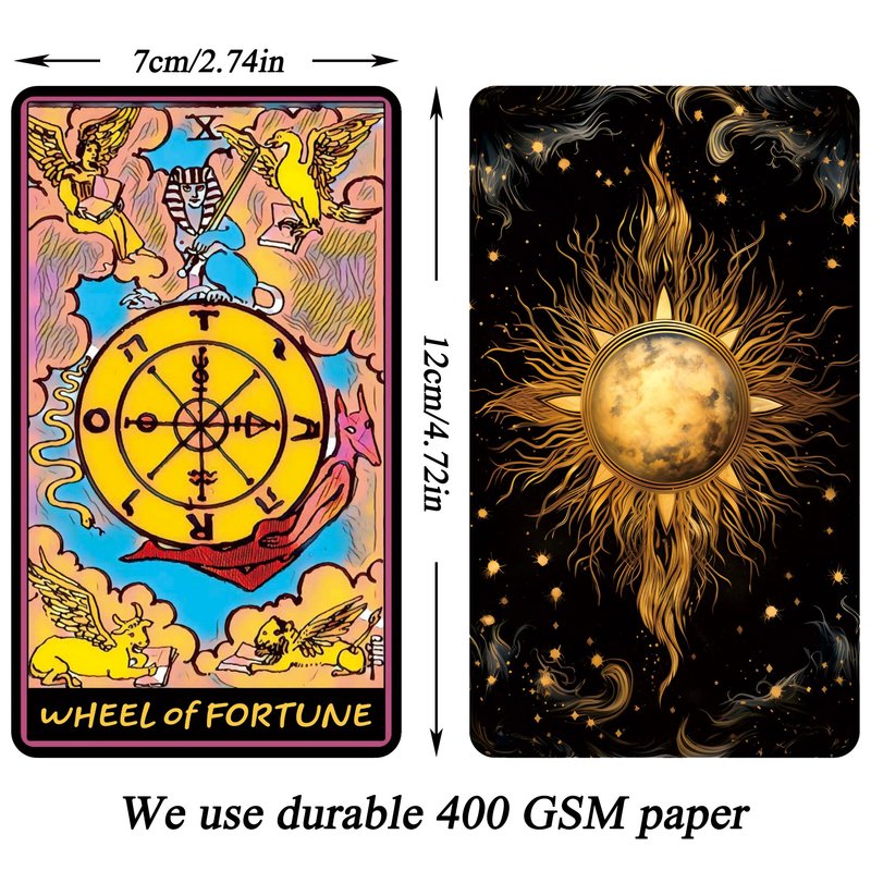 - 【Tarot Cards with Guide Book】A perfect gift for beginners and experienced fortune tellers, this deck is a perfect addition to any Tarot collection. Additionally, there are 2 indicator cards in this deck. You can scan the detailed version of the QR code reading guide, which can quickly guide you through reading