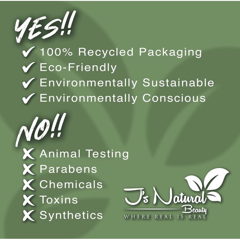 - WE PRESERVE LIFE AND OUR PLANET AT THE SAME TIME - In J's Natural beauty, we love our customers and our planet. Our brand preserves your life because every single one of our ingredients doesn't contain ANY harmful chemicals, synthetics or toxins that often disrupt our hormones in the worst way. We preserve our planet the best way we can .