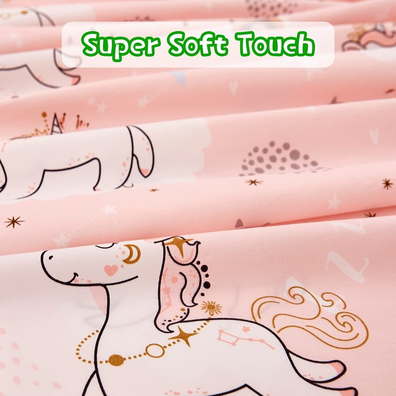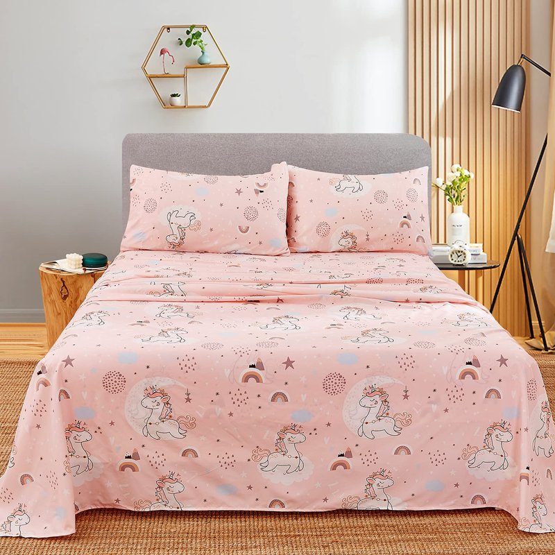JSD Pink Moon Unicorn Kids Sheet Set Twin 3 Piece, Cute Printed Microfiber Bed Sheets for Girls Deep Pocket