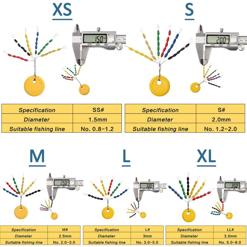 - 5 SIZES KIT: Package include 5 sizes bobber stops XS S M L XL, XS for line #0.8-#1.2; S for line #1.2-#2.0; M for line #2.0-#3.0; L for line #3.0-#5.0; XL for line #5.0-#8.0. Multiple sizes for most freshwater saltwater fishing situations.