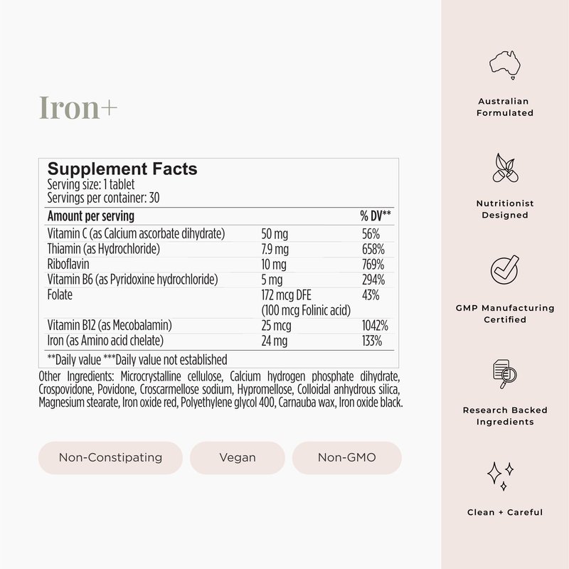 - Vitamins B2 B6 & B12: Crucial B vitamins in the iron pills aid red blood cell production which keep oxygen flowing at proper levels throughout your body.