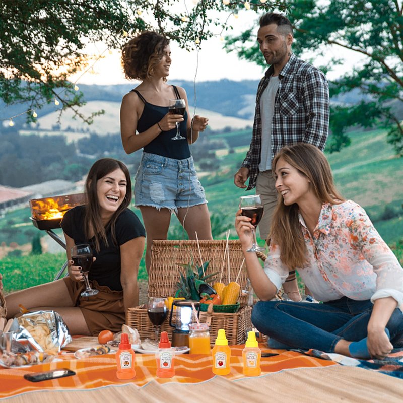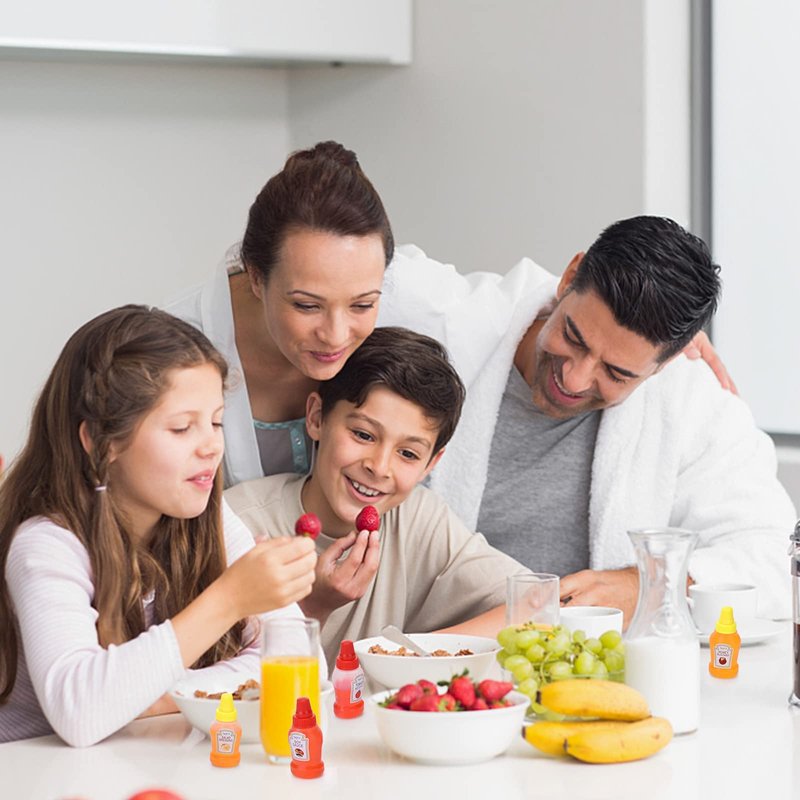- Leak-proof design: the flexible nozzle jug and mini condiment bottles are tightly connected to prevent sauce from spilling, and the yellow and red color matching makes it easy to identify and understand at a glance.