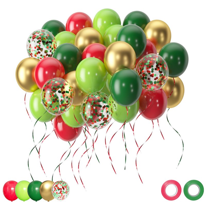 - 【What You Will Get】:The helium Christmas ballons bulk includes 15 red balloons,15 green balloons,10 lime green balloons,10 gold balloons, 10 green red confetti balloons,2pcs red and green ribbons.