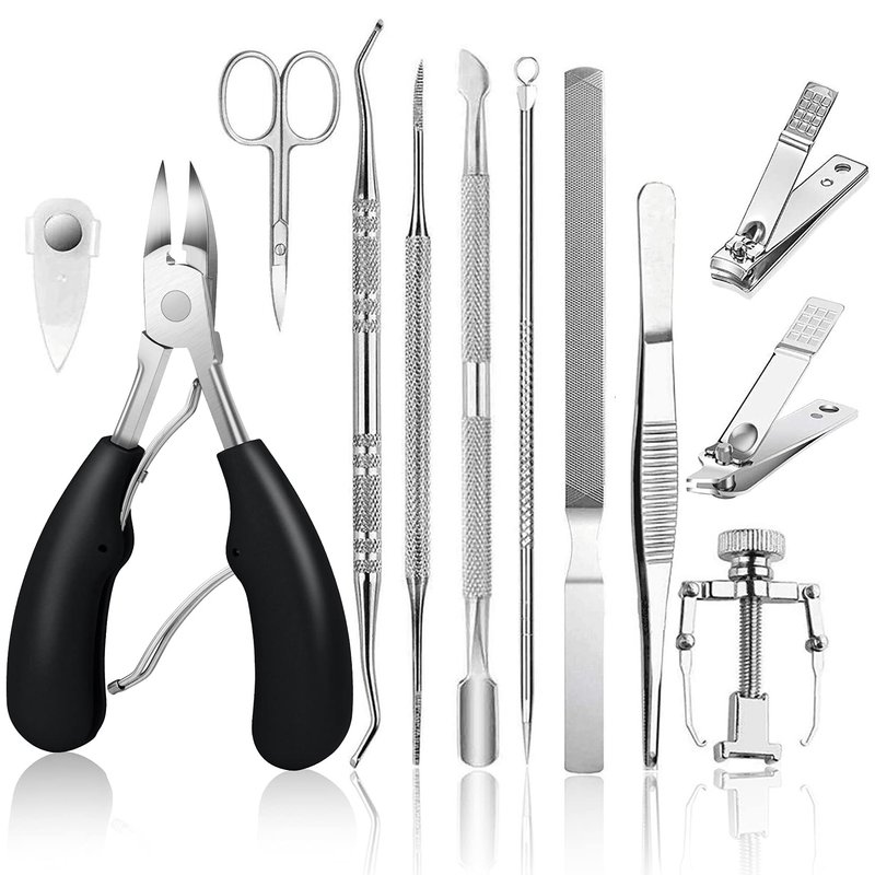 - ✔Multi-Use: Double sized nail lifter can clean the dirt under toenail, lifts toenail, keep nails neatly, prevent future ingrown infection and toenail pain;Very easy to use.The number of 12pc combinations is more than others. Meet your multiple needs. Small scissors help you trim your eyebrows, noses, and beards. Acne needles can help you clear acne and blackheads on your face.Professional tweezers for removing ingrown hair, pulling splinters and tweezing unruly eyebrow hairs.The uses is endless!