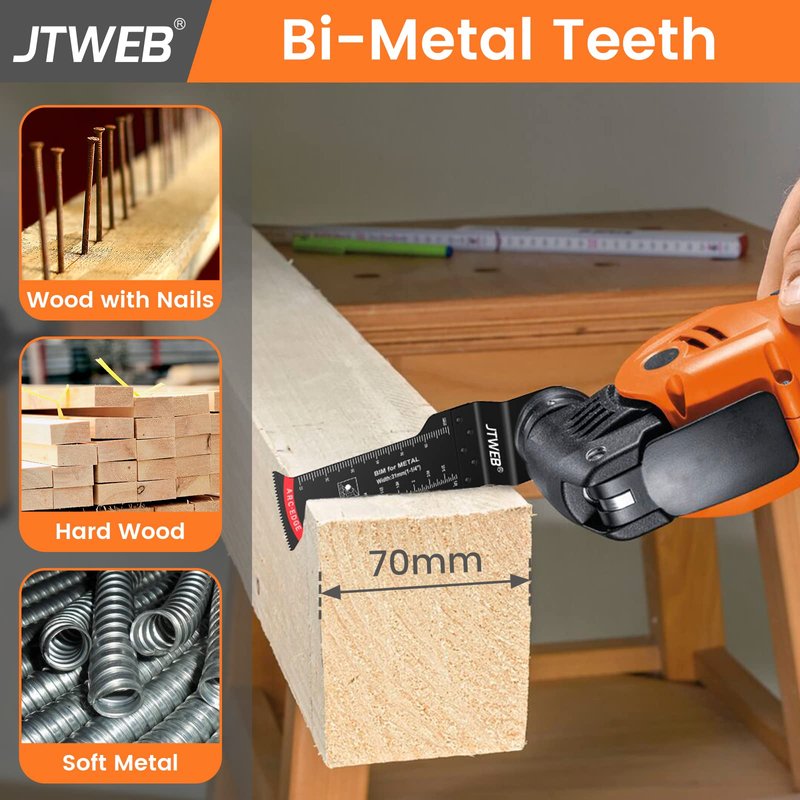 - 👍【Bi-Metal Teeth】The oscillating tool blades are designed for fast and deep cuts in soft metal, wood with nails, and hard wood. The incorporation of bimetal teeth in the blade enhances its durability and resistance to wear and tear