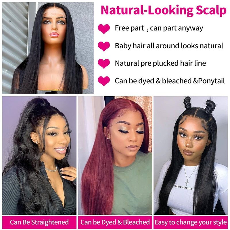 - 🎀Lace Front Wigs Straight Hair Quality: Lace Front Wigs, Brazilian Virgin Straight Human Hair Wigs, Glueless Lace Closure Wig, Natural Silky Straight Human Hair, Smooth, Soft Touch and No Tangle, No Shedding, No chemical processing, Bleached, Dyed, Permed, Durable, Curled and Restyled Changed into Various Hair Styles Like Your Own Hair.