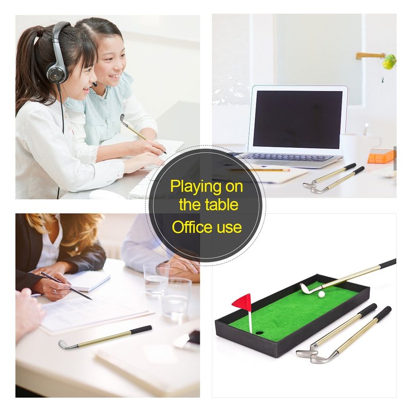 - The mini-golf pen set is made of high-level aluminum alloy, zinc alloy, rubber, foam and flock to ensure the quality and durability of it.