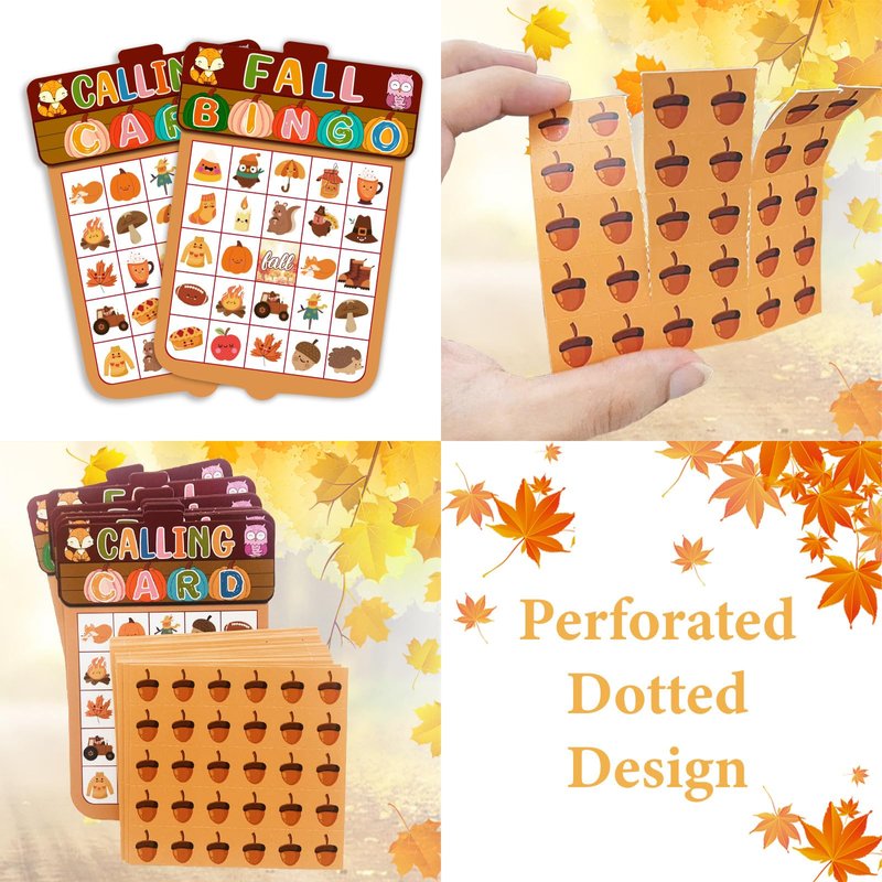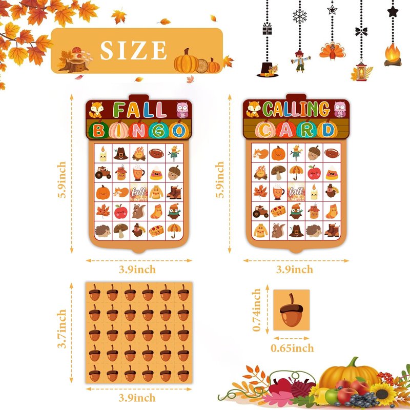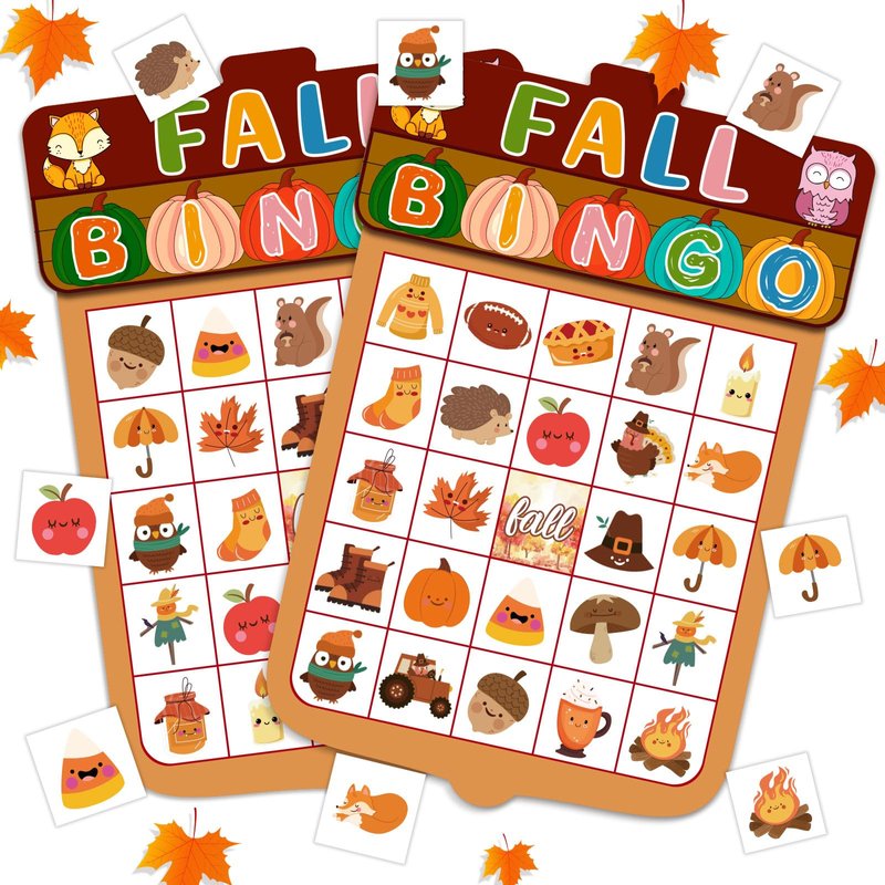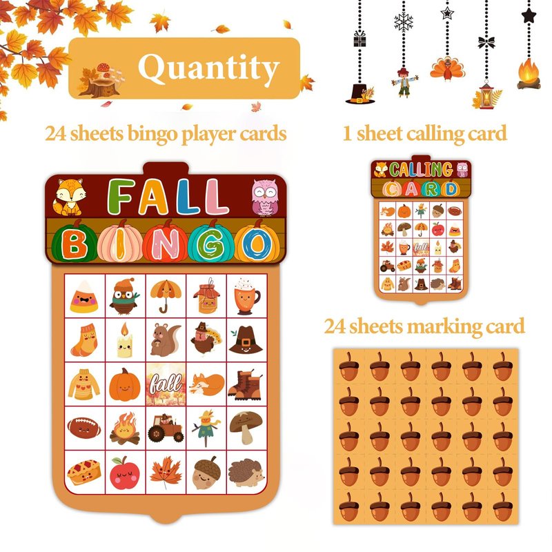 JUESMOS Fall Bingo Game for Kids Adults Fall Games Bingo Cards Autumn Party Games 24 Players Fall Bingo Harvest Game Fall Thanksgiving Game Supplies for School Classroom Family Activities Party Favors