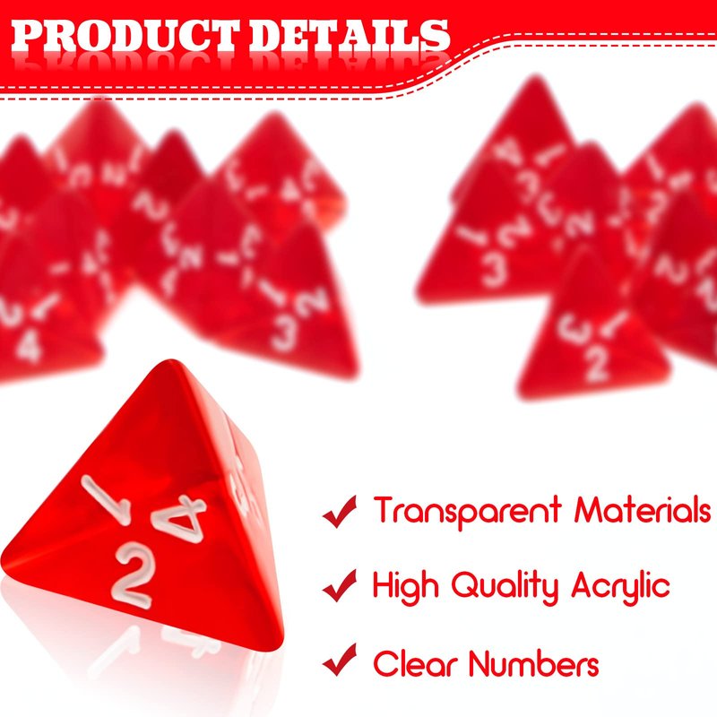 - Sufficient Quantity: you will receive a total of 48 pieces red tetrahedral dice, enough quantity to meet your various game playing need and replacement demands, you can also share them with others