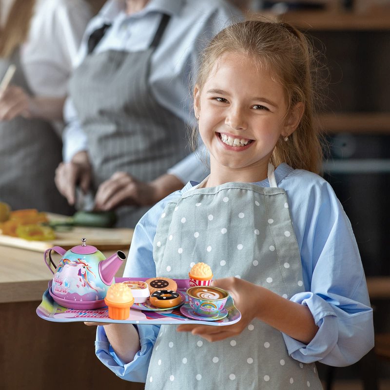 - 🎁Perfect Gift for Kids: The unicorn tin tea set is a perfect gift choice when you are choosing Birthday gift, Christmas gift, new year gift for kids. Girls will be so excited and can't wait to open it when they see beautiful gift box of tea set. Our unicorn tea set is the best pretend play toys for 3, 4, 5, 6, 7, 8 , 9, 10 ,11, 12 year old girls and boys.