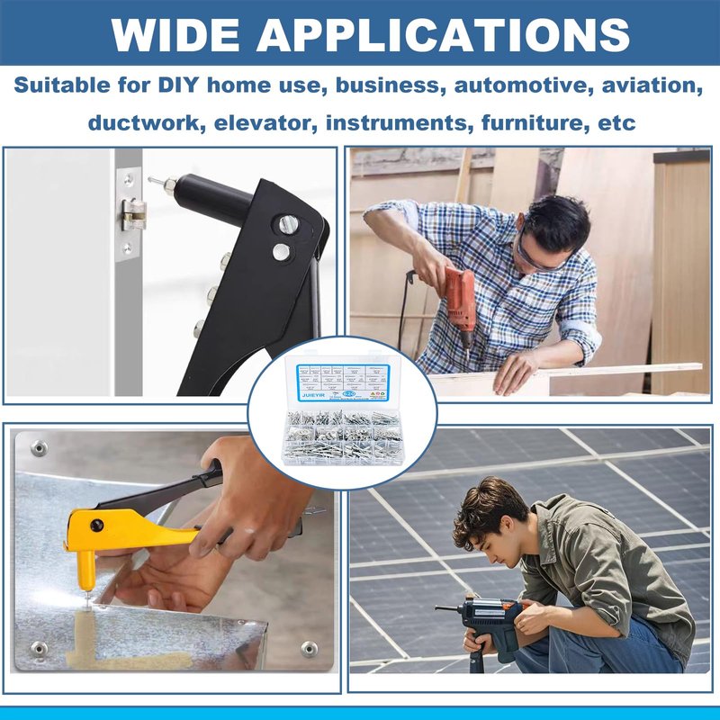 - 【Wide Applications】: Our rivets are very strong and perfect for both indoor and outdoor use. Suitable for DIY home use, business, automotive, aviation, ductwork, elevator, instruments, furniture, etc, connecting plastics, rubber, wood, handles, laminates and so on